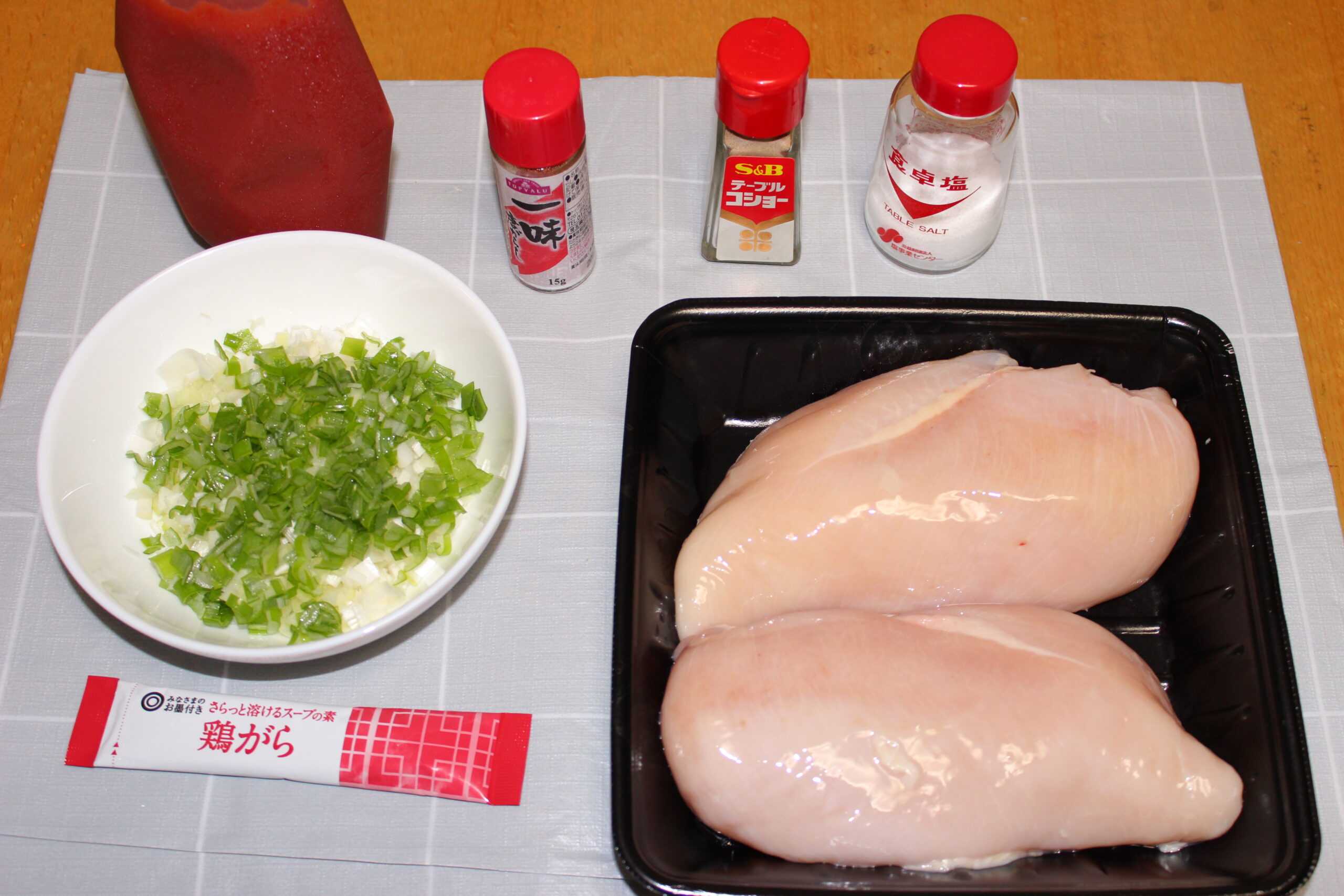 - 鶏むね肉を大きめサイズに削ぎ切り。